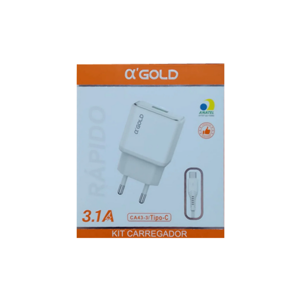 O Carregador Rápido α’GOLD 3.1A foi desenvolvido para oferecer mais praticidade e eficiência no seu dia a dia. Com saída USB Tipo-C, ele garante uma carga estável, rápida e segura para smartphones, tablets e outros dispositivos compatíveis.